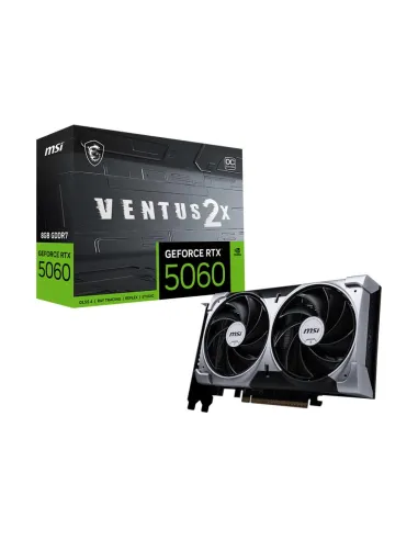MSI GEFORCE RTX 5060 8G VENTUS 2X OC. GRAPHICS PROCESSOR FAMILY: NVIDIA, GRAPHICS PROCESSOR: GEFORCE RTX 5060. DISCRETE GRAPHICS CARD MEMORY: 8 GB, GRAPHICS CARD MEMORY TYPE: GDDR7, MEMORY BUS: 128 BIT. MAXIMUM RESOLUTION: 7680 X 4320 PIXELS. DIRECTX VERS