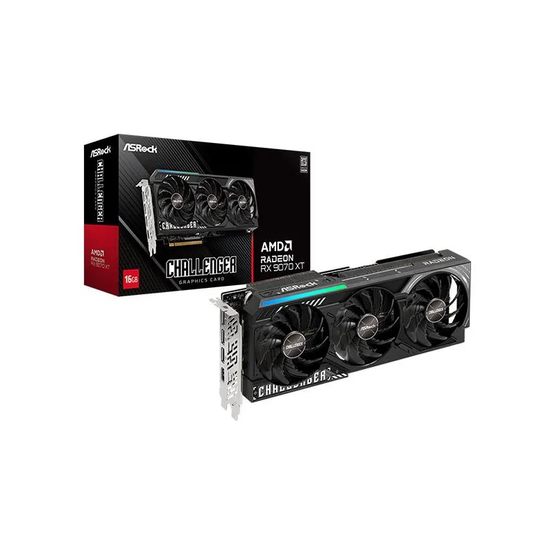 - ASROCK CHALLENGER AMD RADEON RX 9070 XT 16GB. GRAPHICS PROCESSOR FAMILY: AMD, GRAPHICS PROCESSOR: RADEON RX 9070 XT. DISCRETE GRAPHICS CARD MEMORY: 16 GB, GRAPHICS CARD MEMORY TYPE: GDDR6, MEMORY BUS: 256 BIT. MAXIMUM RESOLUTION: 7680 X 4320 PIXELS. DIREC