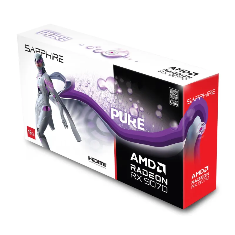 SAPPHIRE PURE RADEON RX 9070. GRAPHICS PROCESSOR FAMILY: AMD, GRAPHICS PROCESSOR: RADEON RX 9070. DISCRETE GRAPHICS CARD MEMORY: 16 GB, GRAPHICS CARD MEMORY TYPE: GDDR6, MEMORY BUS: 256 BIT. MAXIMUM RESOLUTION: 7680 X 4320 PIXELS. DIRECTX VERSION: 12 ULTI