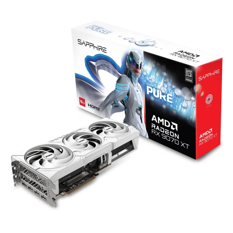SAPPHIRE PURE RADEON RX 9070 XT. GRAPHICS PROCESSOR FAMILY: AMD, GRAPHICS PROCESSOR: RADEON RX 9070 XT. DISCRETE GRAPHICS CARD MEMORY: 16 GB, GRAPHICS CARD MEMORY TYPE: GDDR6, MEMORY BUS: 256 BIT. MAXIMUM RESOLUTION: 7680 X 4320 PIXELS. DIRECTX VERSION: 1